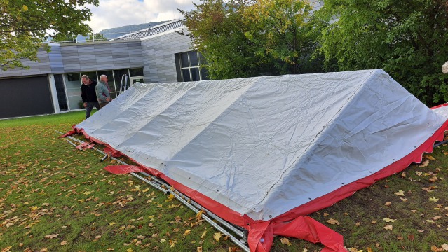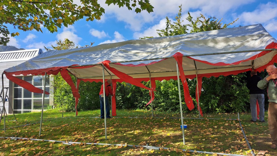 Schließlich wurden noch die Biertischgarnituren aufgebaut und den Gästen der Veranstaltung ein sicherer Unterschlupf geboten.