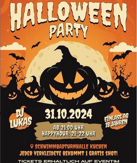 Am 31.10.2024 findet wieder unsere Halloween Party in Kuchen statt.
